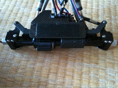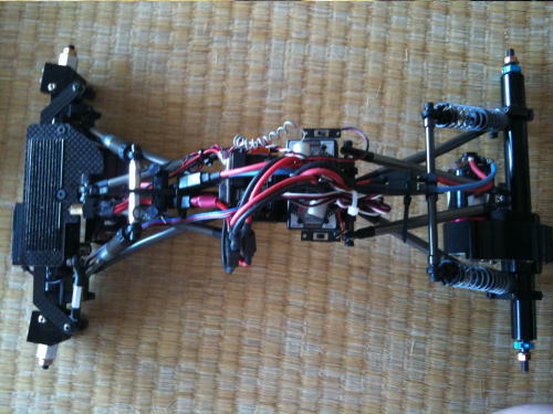 真上かたなので分かりづらいですが1枚カーボンシャーシです。